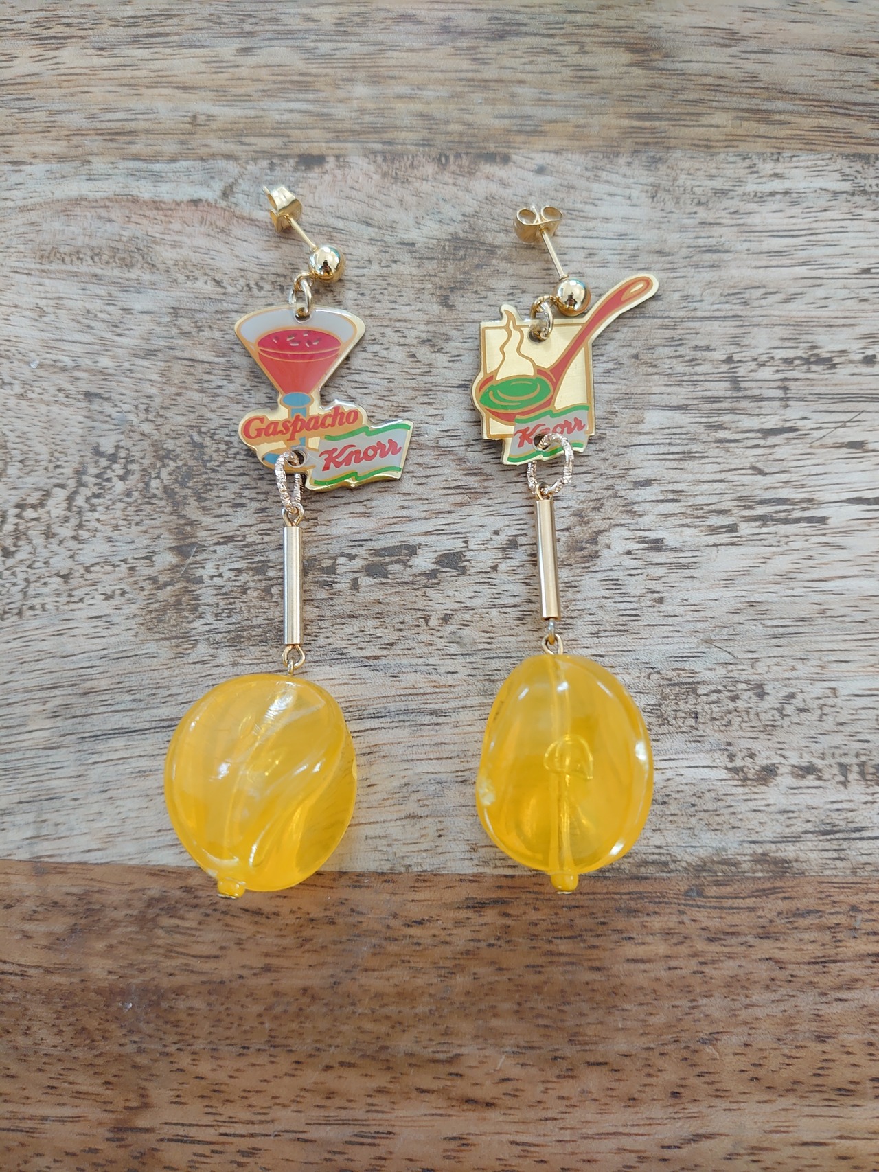 vintage Knorr soup yellow Knorr clear(ヴィンテージ クノールスープ クノール アンティーク ピアス アレルギーフリー サージカルステンレス イエロー 黄色 )